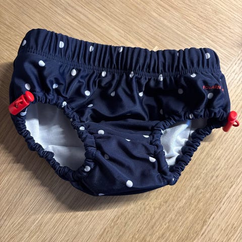 Arena badebleie for barn, størrelse 92 (24 mnd). Badebleien er turkis og har motiv på baksiden. Elastisk linning og benåpninger samt snøring i livet for justering. Egnet til svømming og vannlek for små barn.