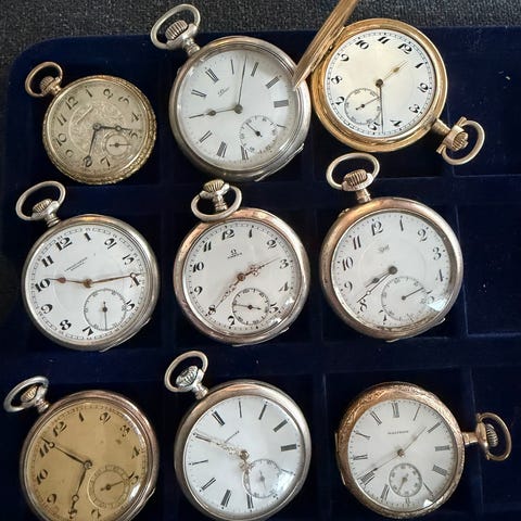 Tre lommeur hvor de to mindre er sølv, mangler glass på det minste. To har opptrekk med nøkkel, så vet ikke om de går. Olma Polo armbåndsur og Grana armbåndsur. Selges samlet kr 1000 kan sendes hentes eller leveres strekning Askim-Oslo