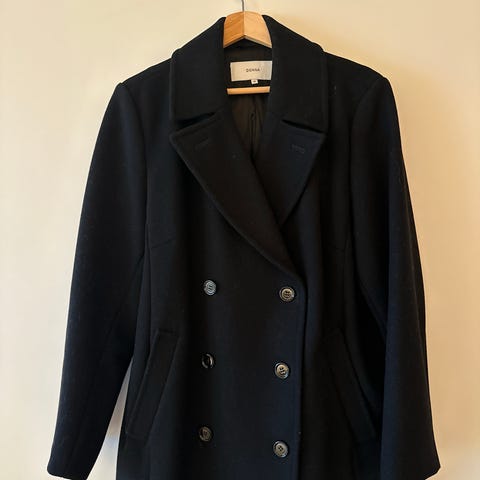 Jeg selger min sorte innsvingete ytterjakke med eksklusive pusekanter. Passer perfekt til vår og høst. Jakken er i italiensk str 46, jeg mener den tilsvarer norsk str 40