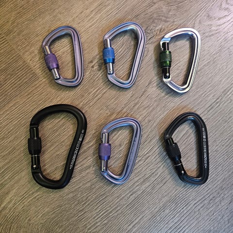 3 karabinkroker til klatring.