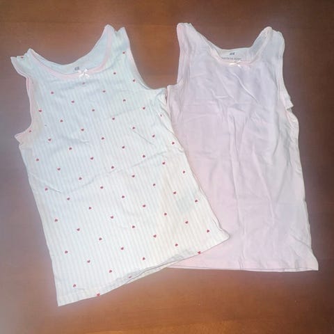 H&M topp for jente i størrelse 128. Toppene er i bomull og kommer i flerfargede varianter, blant annet med mønster. Egnet som hverdagsplagg eller undertrøye for barn i tilsvarende høyde og alder. Hvis du skal kjøpe 1 topp da er det 30 kr hvos du kjøper 2 så er det 50 kr