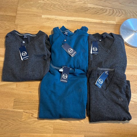 2 stk Sebago pique str XXL, en ny i plast, en brukt to ganger. Tekst på bryst: Sebago Yacht Club. Farge grønn.