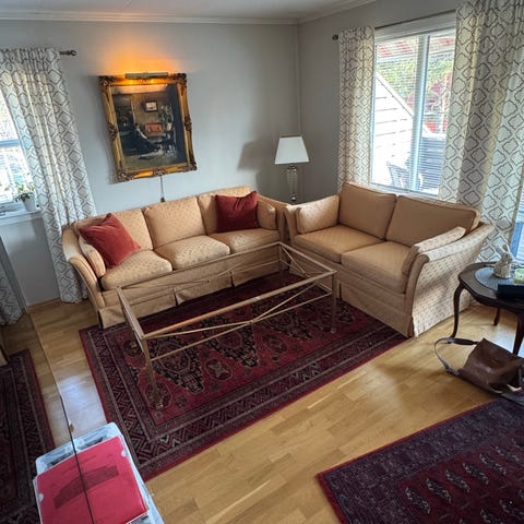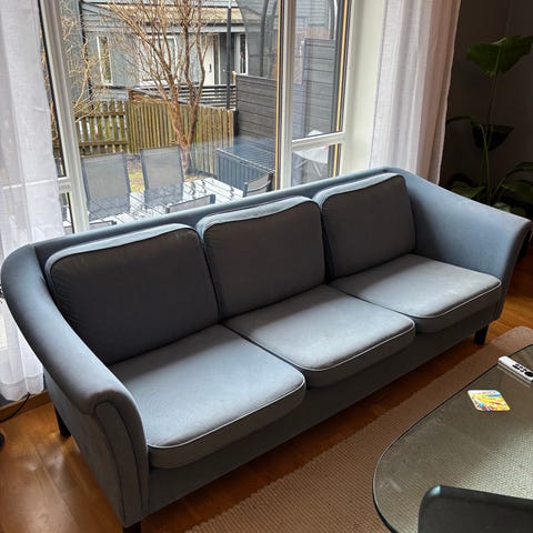 Pent brukt kvalitetssofa, pent stoff, god å sitte i og godt bygd. LK Hjelle, norsk kvalitetsprodusent.