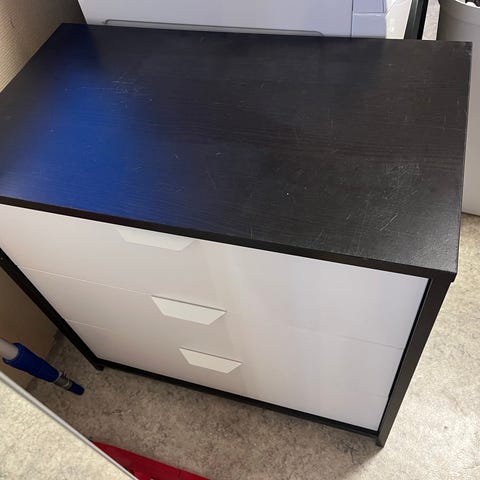 Godt brukt kommode selges. En del små ripper og ujevnt folie på toppen.