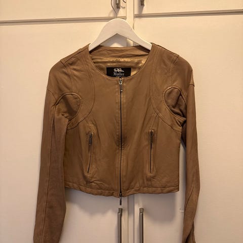 Tøff, hvit jakke fra Zavannah i str 40 (M/L), imitert skinn med leopardmønstret innside. Denne jakken passer både til hverdag og fest. Pent brukt og i god stand. Selges rimelig, pris er ferdig prutet.