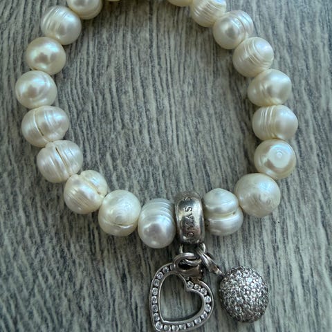 Thomas Sabo anheng i sølv med perle for dame. Anhenget har en dekorativ figur som omkranser en rund perle. Hovedmaterialet er sølv, kombinert med perle som blikkfang. Passer til bruk på kjede eller armbånd med passende feste.