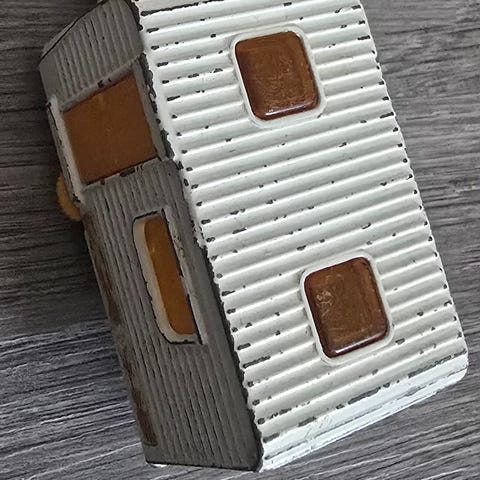 Volvo lekebil med campingvogn. Sett med personbil og hvit campingvogn med detaljerte interiørelementer som sittegruppe, seng og kjøkkenløsning. Bilen har åpnebare dører, panser og bakluke, og campingvognen har åpnebar dør og takåpning for tilgang til innredningen. Egnet som lekekjøretøy for barn eller som samlemodell.