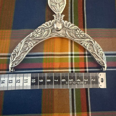 Nysølv Veskelås til Bunad, tror det er Østfold / Halden / Fredrikstad bunad, men er ikke helt sikker. Må hentes på Ammerud.