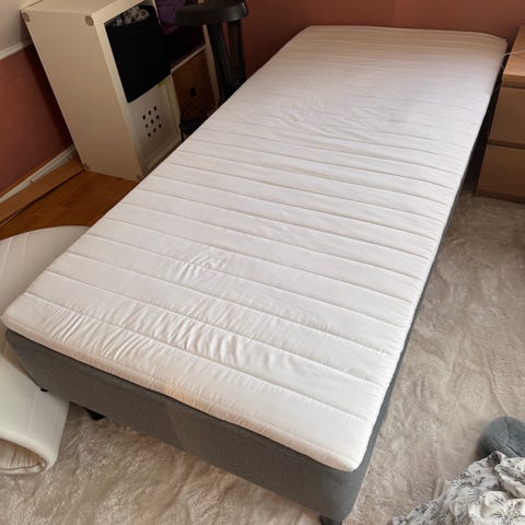 IKEA madrass i hvit farge. Madrassen har quiltet overflate med rutemønster og bølgeformet topp på overmadrassen. Passer til enkeltseng. Egnet til bruk på soverom eller gjesterom som liggeunderlag i seng eller på rammemadrass/sengebunn.