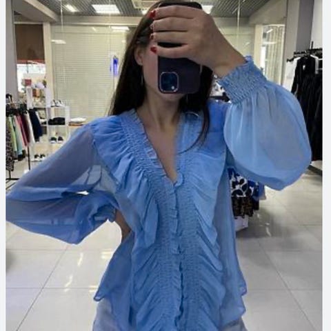 Zara bluse for dame i størrelse S. Blusen er beige og laget i polyamid. Den har lange ermer, rund hals og hel blondestruktur med mønster. Passer til bruk alene eller over en topp, til både hverdags- og penere antrekk.