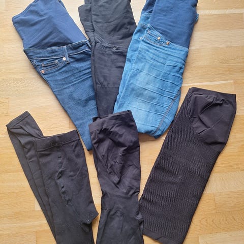 Gravidbukser 14 stk. str 36, 38 og 40, inkl. treningstights