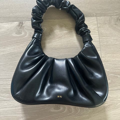 Den brukes over skulder eller crossover. Den er overraskende romslig med 35 cm bredde 20 cm høyde 15 cm dybde