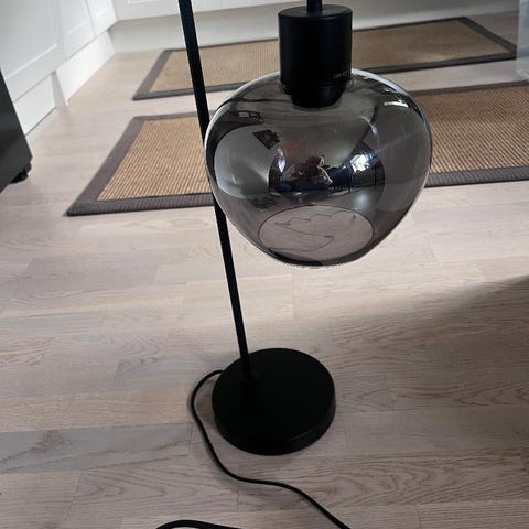 Bordlampe i sølv selges. Høyde ca 33-34 cm.