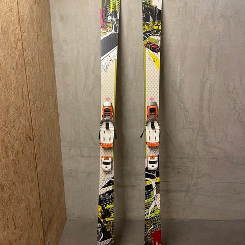 Har bindinger, men bakerste del mangler på den ene. Se bilde for del som mangler
