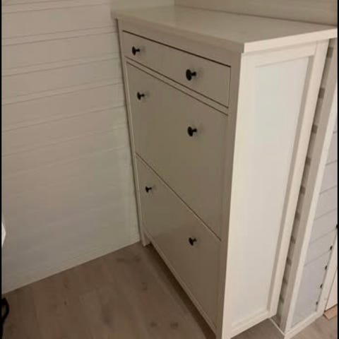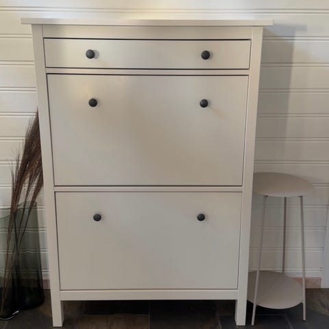 IKEA Hemnes skoskap med to skuffer til sko + en liten skuffe til småting.