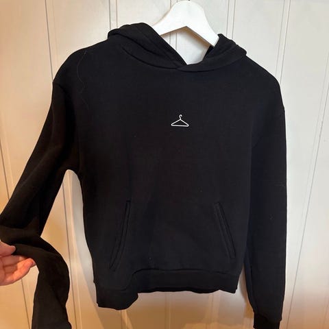 Selger en svart hettegenser fra tyske merke OneLove. Har et fint broderi av et hjerte med bølger.