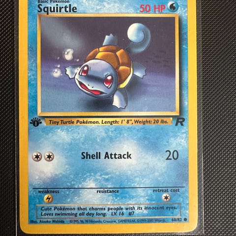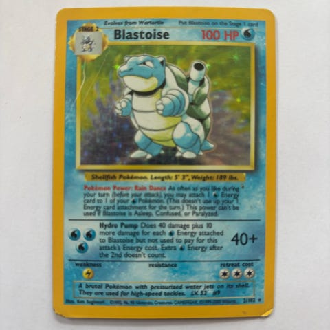 Selger et klassisk Pokémonkort: Blastoise 2/130 holographic fra 1999.