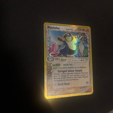 Kortet er brukt og har noe slitasje på kantene, men motivet og holo-effekten er fortsatt fin. Et kult kort for samlere eller Pokémon-interesserte.
