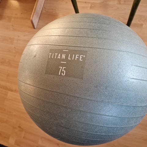 Titan Life grå treningsball med diameter på 65 cm. Ballen har rillet overflate som gir bedre grep under bruk. Egnet til styrketrening, balanseøvelser, stabilitetstrening og som sitteball. Passer til bruk hjemme eller på treningssenter.