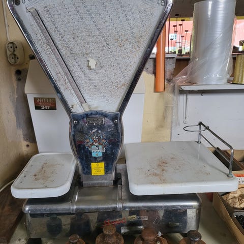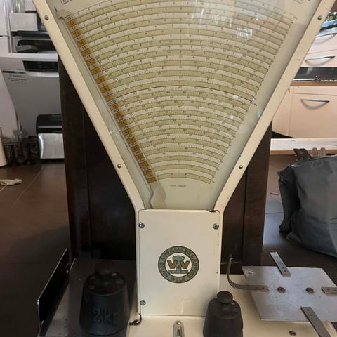 Gammel båndsag, ombygget til skap med hyller