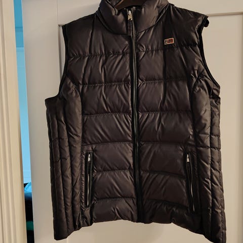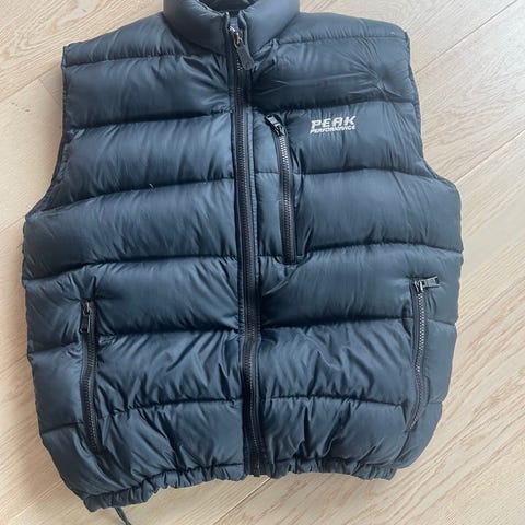Peak Performance dunvest for dame i størrelse M. Vesten er svart og har kraftig krage og glidelåslukking i front. Fylt med dun for god isolasjon. Passer som ytterlag på kjølige dager eller som mellomlag under jakke. Egnet til hverdagsbruk og utendørsaktiviteter.