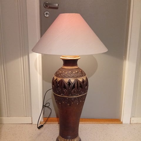 Lampen fungerer. Kontakt byttet. Cirka 80 cm høy med skjerm.