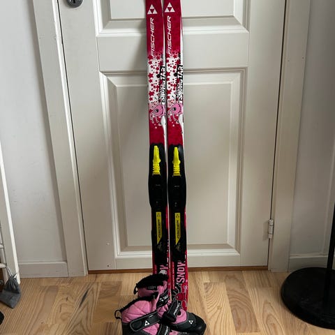 Skiene og skoene er nesten som nye, da de bare er brukt noen få ganger.