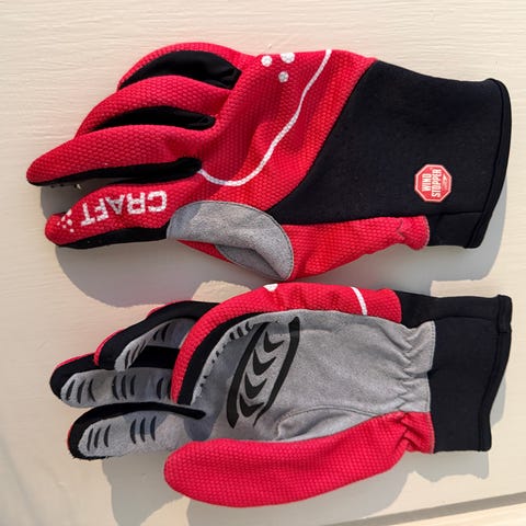 Lite brukt Craft langrennshanskar i lilla, grå og svart. Yttersida er vindtett med forsterka felt i handflata for betre grep og slitestyrke. Elastikk ved handleddet for betre passform. Nypris ca. 600 kr.