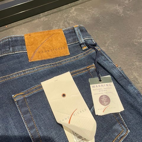 Selger en pent brukt Handpicked jeans, størrelse 33. Produsert på samme fabrikk som Jacob Cohen – med samme fokus på håndverk, kvalitet og eksklusive detaljer. Myk denim med svært god komfort og en moderne, tidløs vask som passer til det meste. Buksa er i veldig god stand og kun brukt ved få anledninger. Nypris ligger vanligvis rundt 3000–4000 kr.