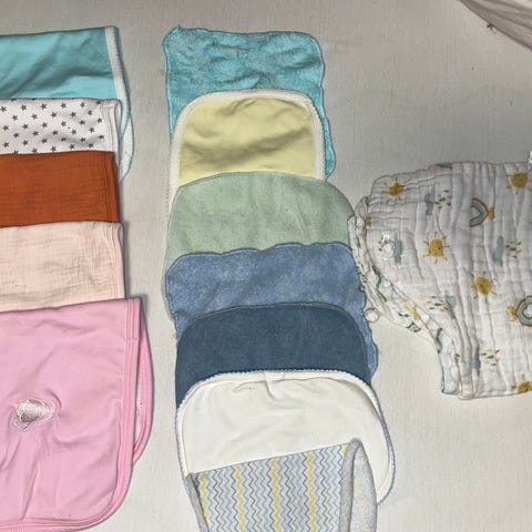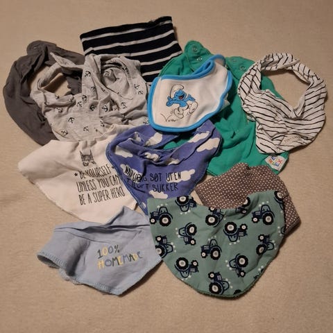 Div gulpekluter, ubrukte. Selges da lageret for bleiekaker rydder og ut ikke lager så mange lengre. Dersom du vil ha noen annet på profilen, kan dette evt slåes tilsammen i en pakke for å spare porto. Slenger med en body og et par sokker.