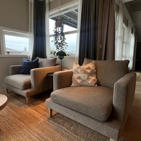 Nydelig lounge lenestol. Solid møbel, nydelig myk og behagelig å sitte i for en eller to.