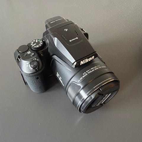 Selger et svært lite brukt Nikon Coolpix P1000 superzoomkamera. Kameraet ble kjøpt i 2021, men har blitt nesten ikke brukt og fremstår derfor i svært god stand.