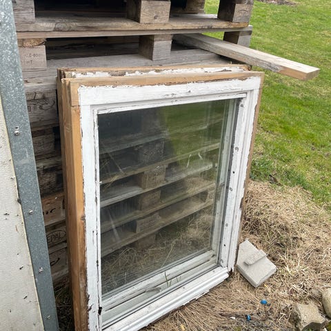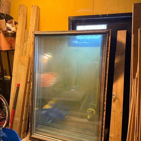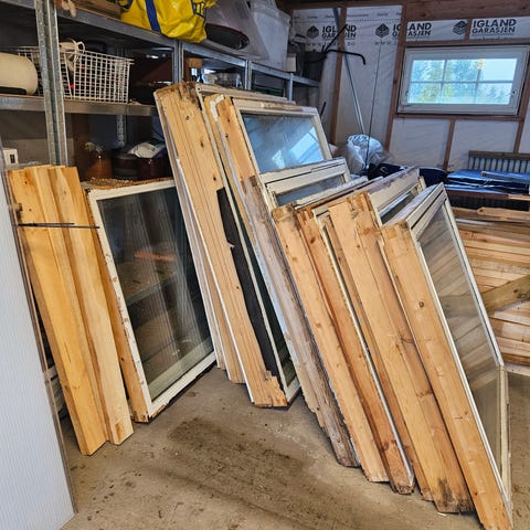 Tradisjonelt vindu som fortsatt holder mange års bruk videre. Ingen råte - men kan godt få litt ny maling før gjenbruk.
