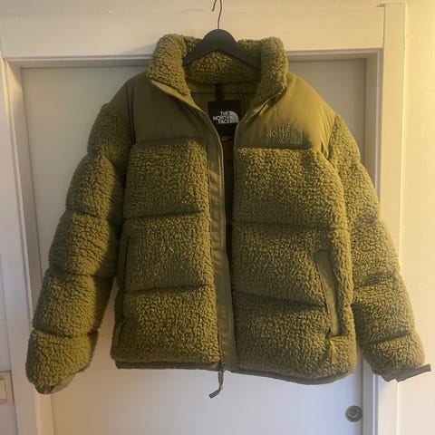 The North Face jakke i herremodell, størrelse L. Jakken er laget i fleece-materiale og har grønn farge. Modellen har glidelås i front og sidelommer. Egnet som ytterjakke eller mellomlag i kjøligere vær.