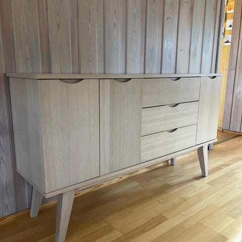 Fire skuffer i midten og skap på hver side.