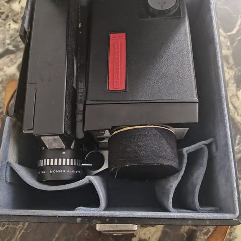 Yashica Minister Analog Kamera, med fastmontert Yashica Noninor-objektiv. Klassisk 35 mm målsøkerkamera i metall og sort kunstskinn. Kameraet har innebygd lysmåler og manuelle innstillinger. Medfølgende tilbehør inkluderer etui i brunt skinn, sort etui og ekstern blitsenhet. Egnet for 35 mm filmfotografering og som samlerobjekt for analogt Kamera.