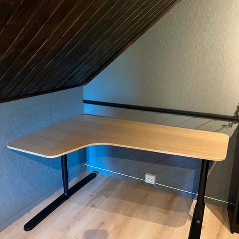 Micke skrivebord med Påhl bordhylle fra IKEA