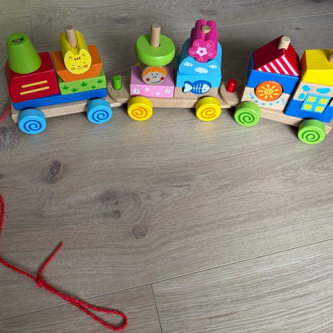 Selger et fint tretog fra Djeco med gårdsdyr. Fargerik og morsom leke hvor barnet kan trekke toget etter seg og stable dyrene på vognene.