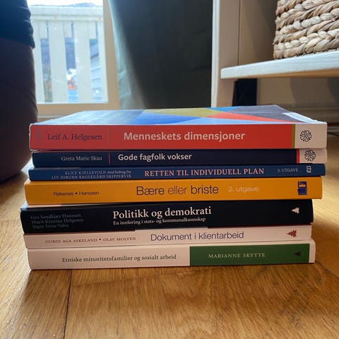 Mangler kun anatomi og klinisk sykepleie bøkene. Dette er bøker som skal beholdes etter studie.