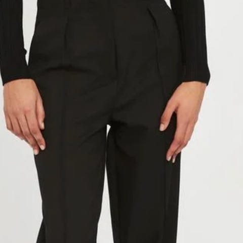 En stilfull dressbukse fra Copenhagen Muse i sort, str M. Buksen har en løs passform, dekorative legg og ankellengde. Dette er en tidløs klassiker i basisgarderoben som kan styles med det meste.