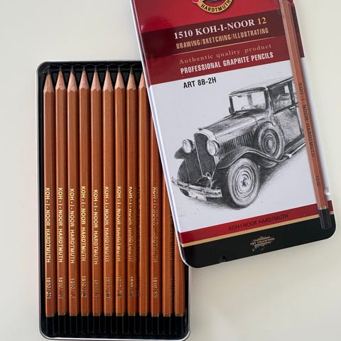 Koh‑I‑Noor 1500 Hardtmuth tegneblyanter i hardhetsgrad 4H. Blyantene har sekskantet trekropp. Leveres i plastetui med plass til flere blyanter. Egnet for teknisk tegning, skisser og annet presisjonsarbeid der en hard blyant med lys strek er ønsket.