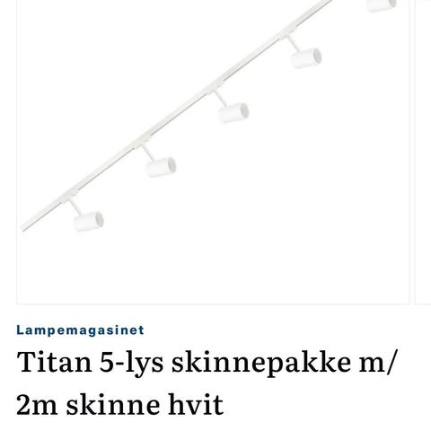 Selger uåpnet skinnesystem med 6 stk spotter og pærer. Selges grunnet dobbeltløp.