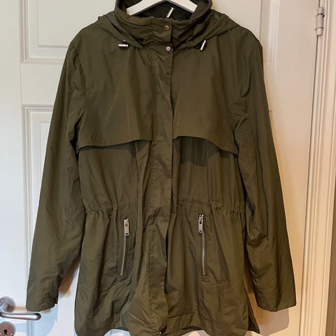 Lett og deilig jakke frå Zizzi, str. M som tilsvarer 46/48 (xl). Fin grøn farge. Snøring nederst. Hette. Mjuk i stoffet (polyester/bomull).