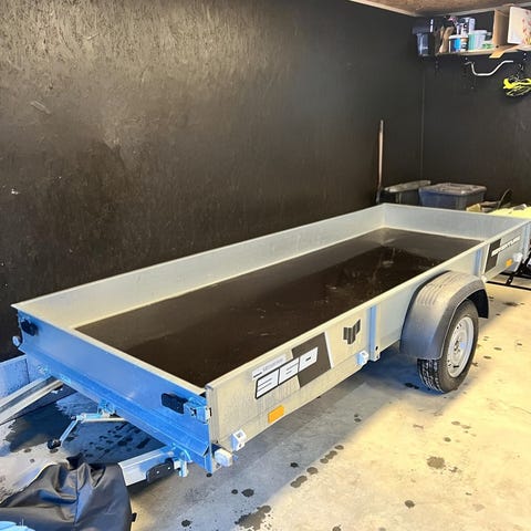 FXR tilhenger med lukket kapell i svart. Tilhengeren har hel bakluke som fungerer som kjørerampe, egnet for transport av blant annet snøscooter eller annet utstyr som trenger værbeskyttet frakt. Lukket overbygg gir skjermet last under transport og lagring. Konstruksjonen er tilpasset personbiltrekk og bruk på vei vinter og sommer. Kan løfte kappelet.