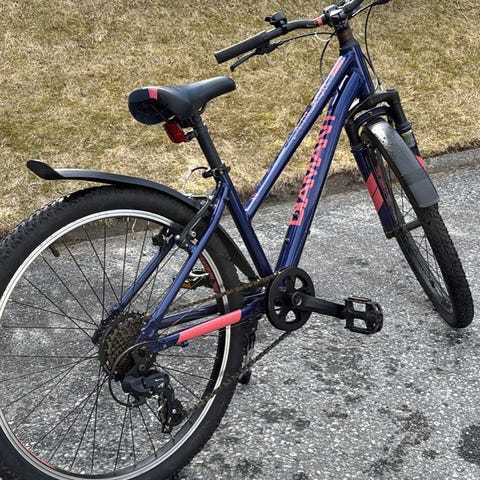 Sykkelen er i meget god stand, det er kun et lite hakk I sete.