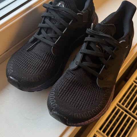 Adidas løpesko i størrelse 38. Skoene har overdel i syntetisk materiale og tekstil i hovedsakelig hvit farge med svarte og gule detaljer. Yttersålen har mønstret gummisåle for godt grep. Egnet til løping og annen trening utendørs eller innendørs.