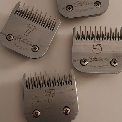 2 helt nye klippeskjær. Kun åpnet og forsøkt å klippe 5 minutter. Det ene 4FC har ceramic edge blad, noe som gir lavere overflate temperatur og det andre er ultra edge i stål. Bruker alltid avstandskammer på klippeskjærene så trenger derfor ikke disse to skjærene. Skjærene har blitt oppbevart i original innpakningen og ser helt nye ut. Ny pris i nettbutikker ligger på ca 500 pr skjær. Så her får en mye skjær for pengene.