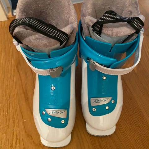 Burton snowboardbindinger i blå og hvit farge. Mangler en bindingsfeste på den ene bindingen. Tror det er strl M
