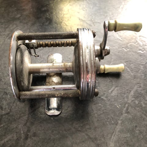 Record No 1500 fiskesnelle i metall med åpen trommelkonstruksjon. Snellen har sveiv med to håndtak og er utstyrt med fiskesene på spolen. Egnet til tradisjonelt fiske med stang der man ønsker en klassisk multiplikatorsnelle i metall. 299kr eller kom med bud