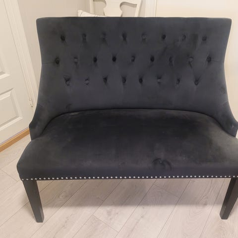 Liten spisesofa selges rimelig, veldig god å sitte i. Er et par flekker på den, se bilde. Følger med 3 trekk.